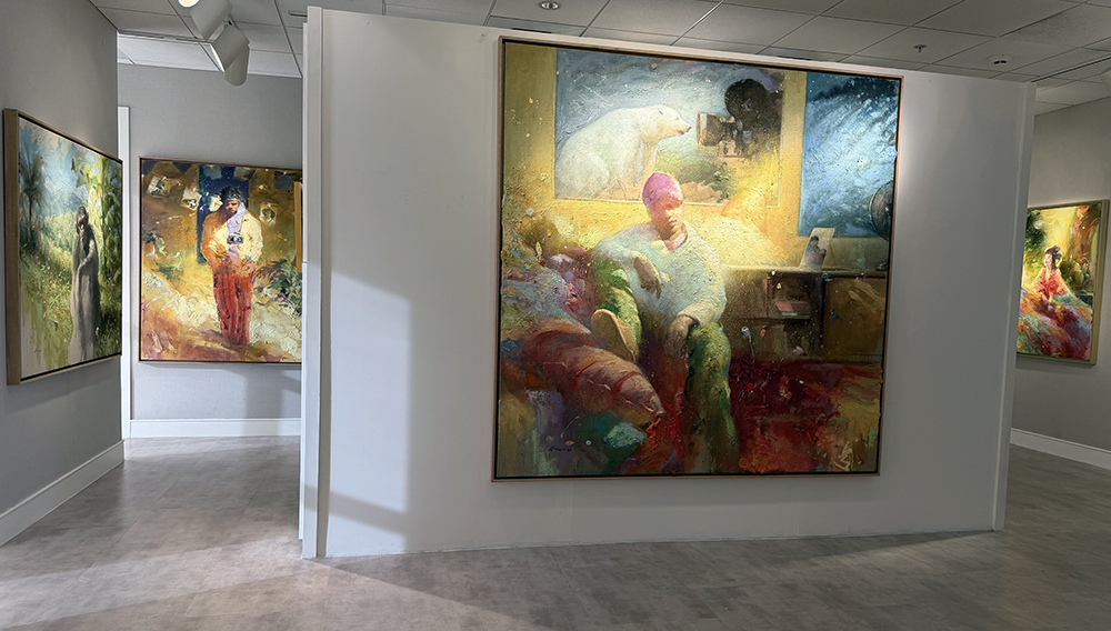 With this deeply moving exhibition, Reynier Llanes takes us on a journey that blends imagery of the past and the present with optimistic dreams of the future. Symbolism plays heavily in Llanes’s work and stems from his experiences as a young artist in Cuba where he had to veil any critique of life or be met with harsh consequences. With “Pursuit of Grace”, Llanes delves into his own spirituality in reaching for grace through art. This exhibitions travels to us after having been exhibited at Rutger-Camden Center for the Arts in New Jersey.